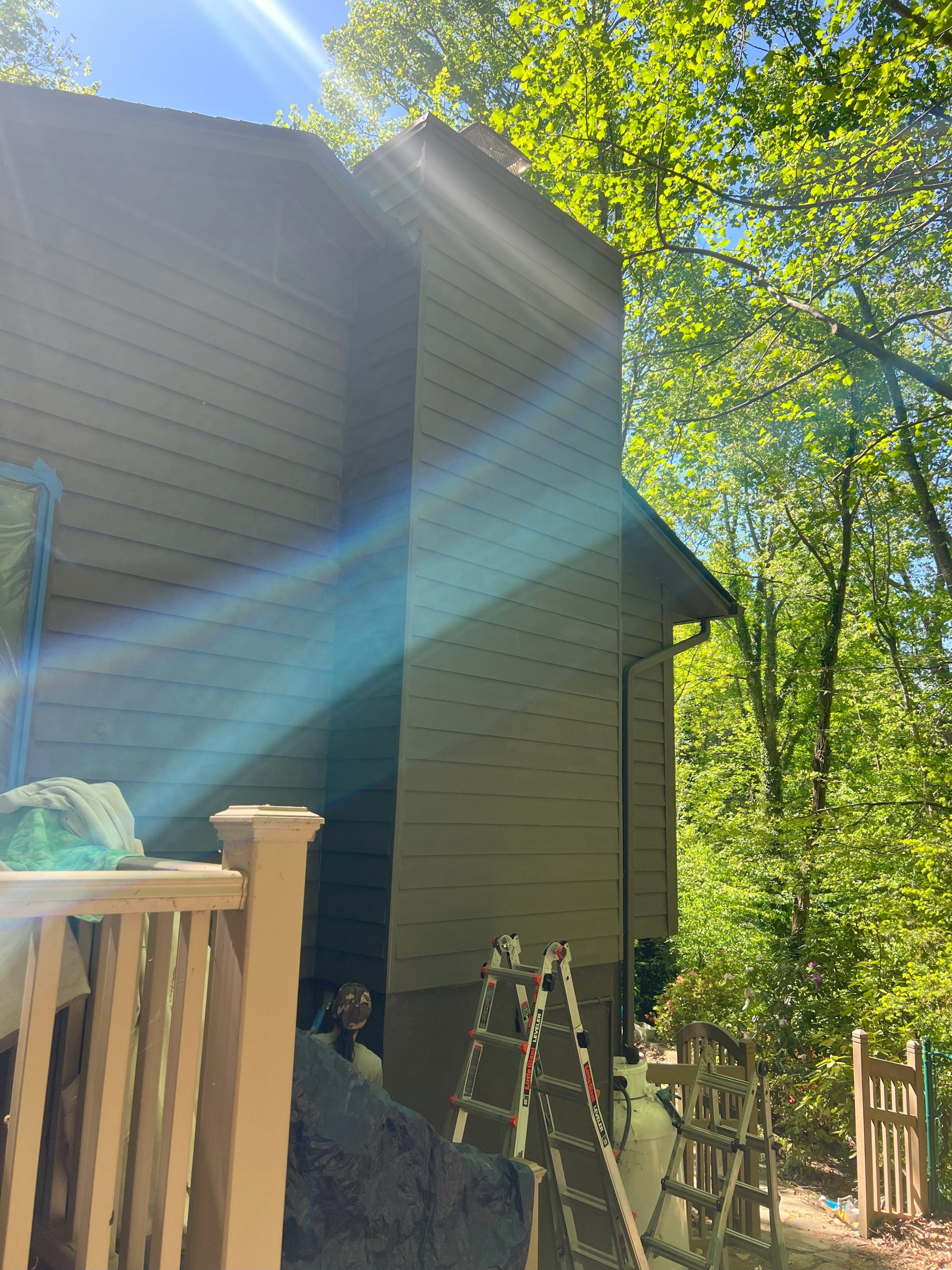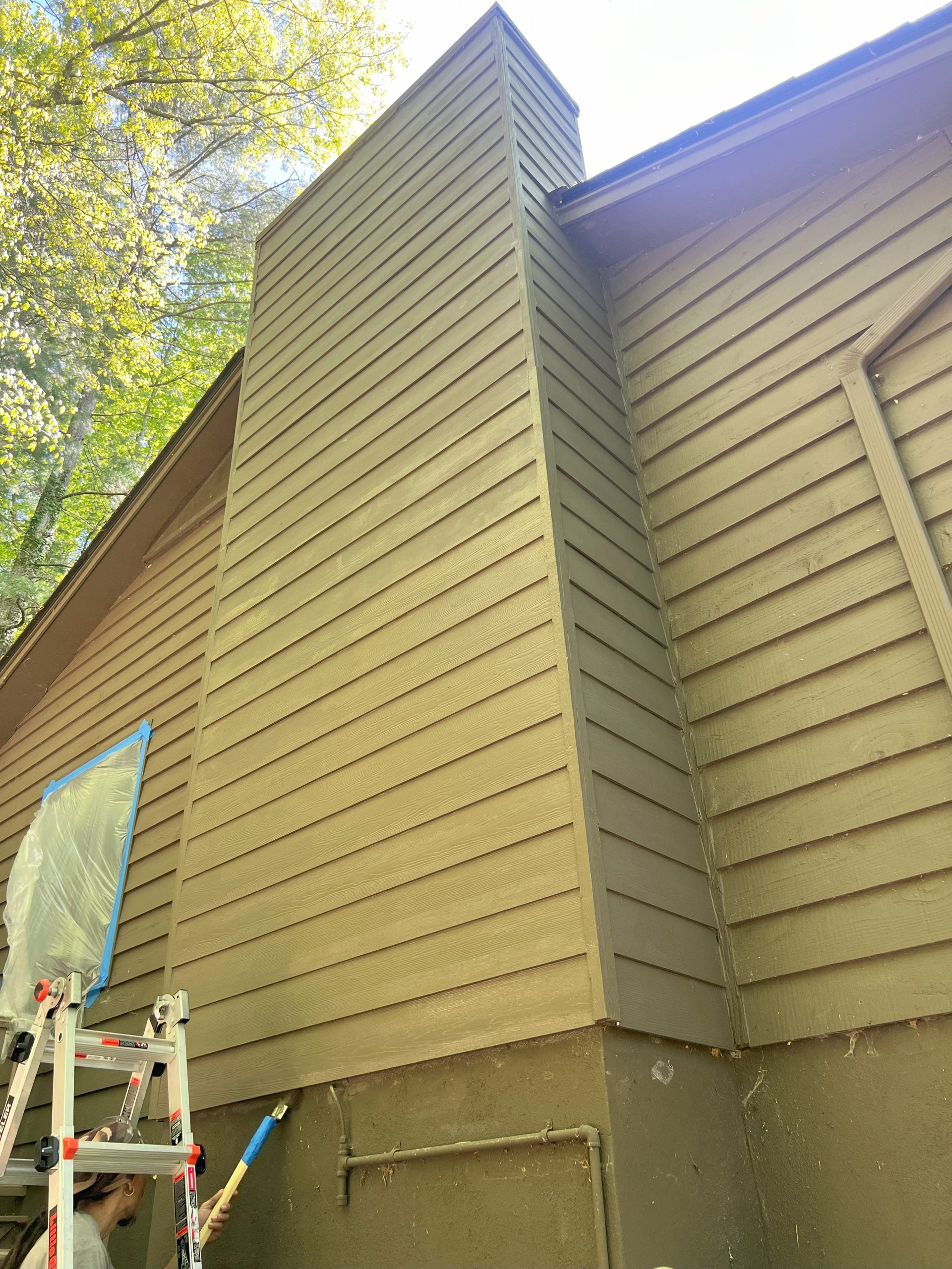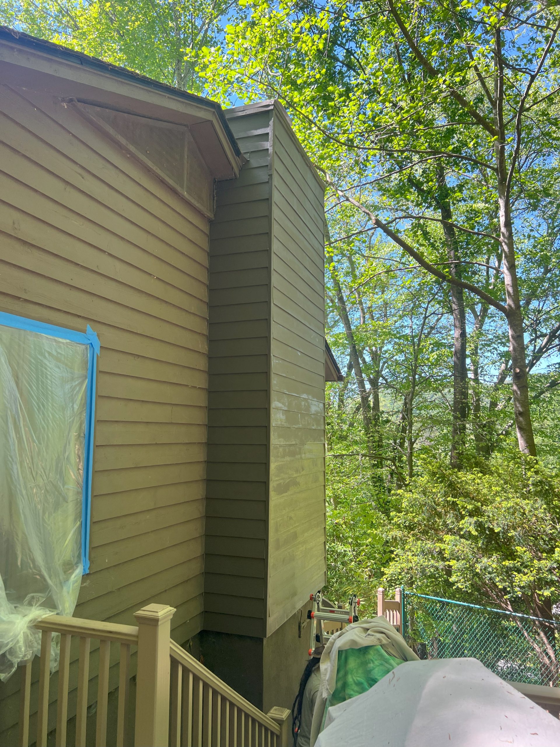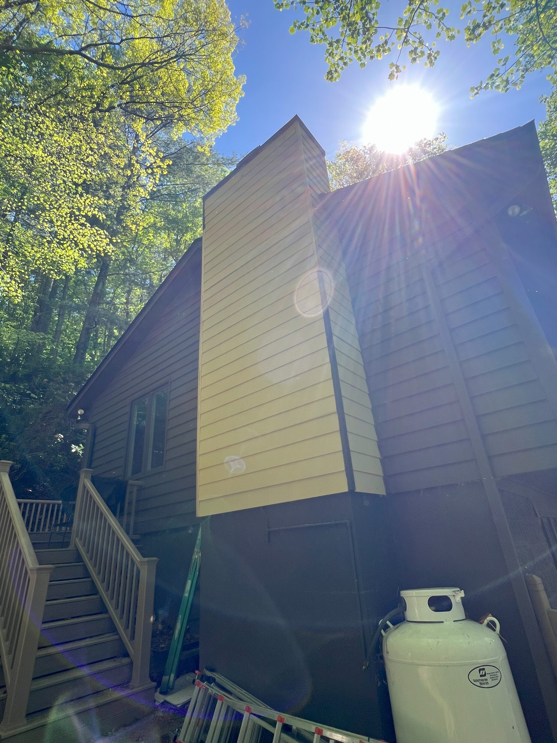 What do you do when the rest of your house’s cedar siding is in good shape but the chimney siding is rotting off? Well, cedar plank can run up to almost $30 a board now! We used cedarmill patterned Hardie Board to give this client a headstart on the rest of her siding with new materials that will last a lifetime.